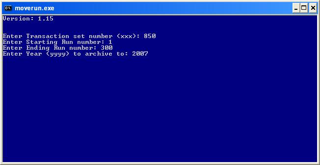 the archived runs. The program will create the archive folder and will move all of the runs in the selected range into that folder under the root document type folder. For example, PO runs for 2008 would be archived to the \850\2008 folder. . |